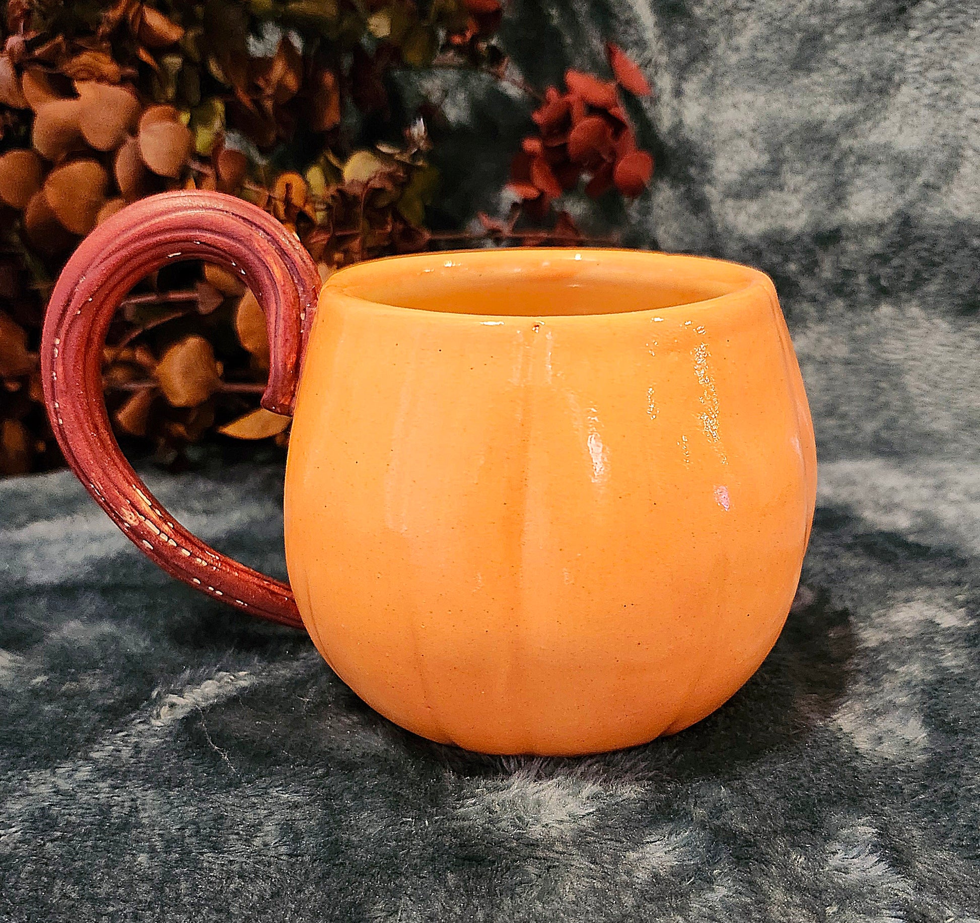 Sculpted handle and pumpkin decal. (Microwave NOT recommended).